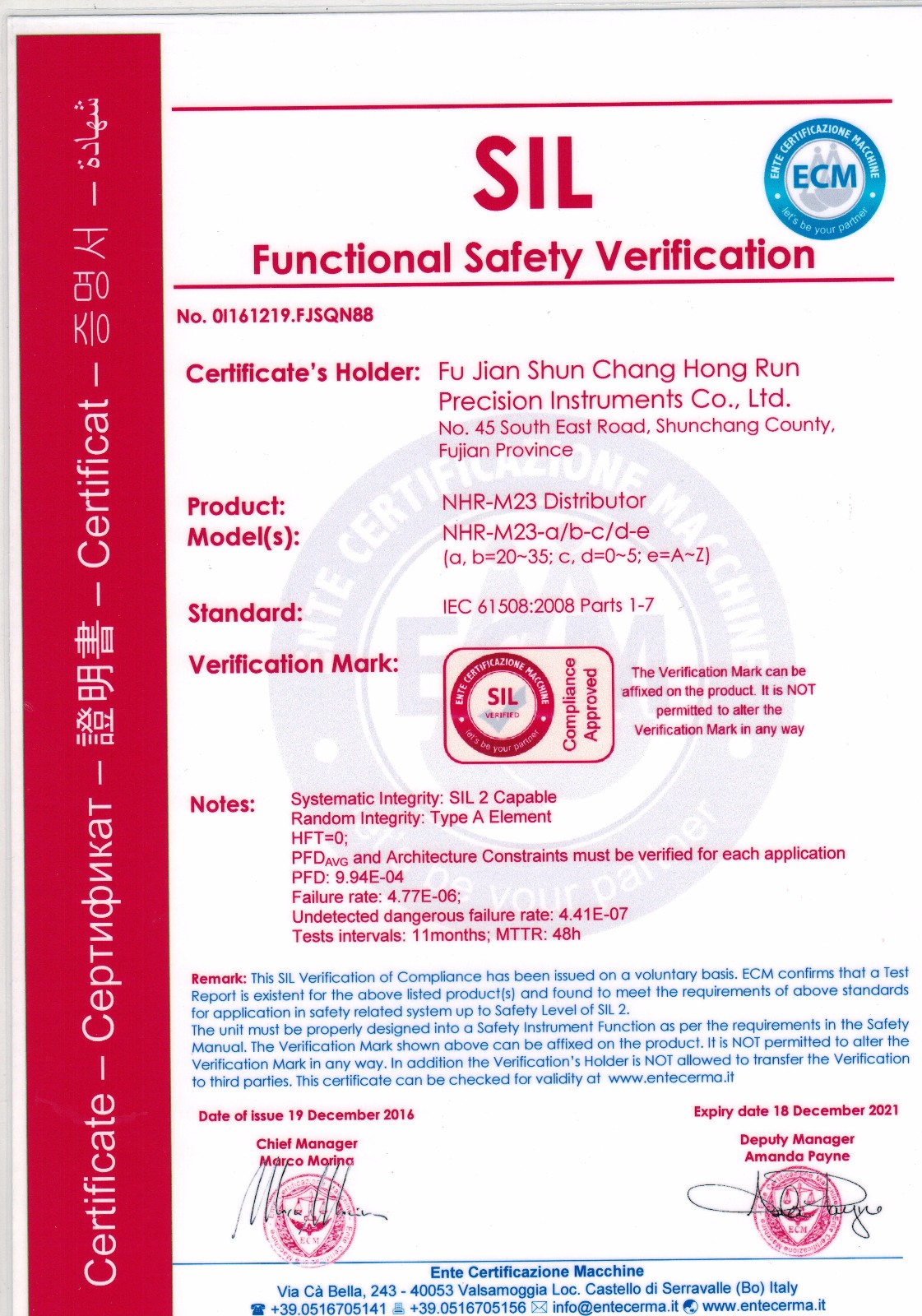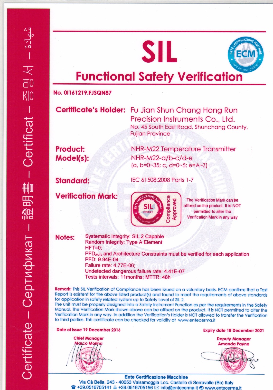 近日,虹潤智能儀表系列產(chǎn)品再傳喜訊,虹潤兩款智能儀表產(chǎn)品NHR-M22溫度變送器、NHR-M23配電器獲得了國際SIL2功能安全認(rèn)證證書。這標(biāo)志著虹潤儀表產(chǎn)品的安全性達(dá)到了國際標(biāo)準(zhǔn)。也為虹潤產(chǎn)品實(shí)現(xiàn)走向世界的美好愿景再一次打下了堅(jiān)實(shí)的硬件基礎(chǔ)。
