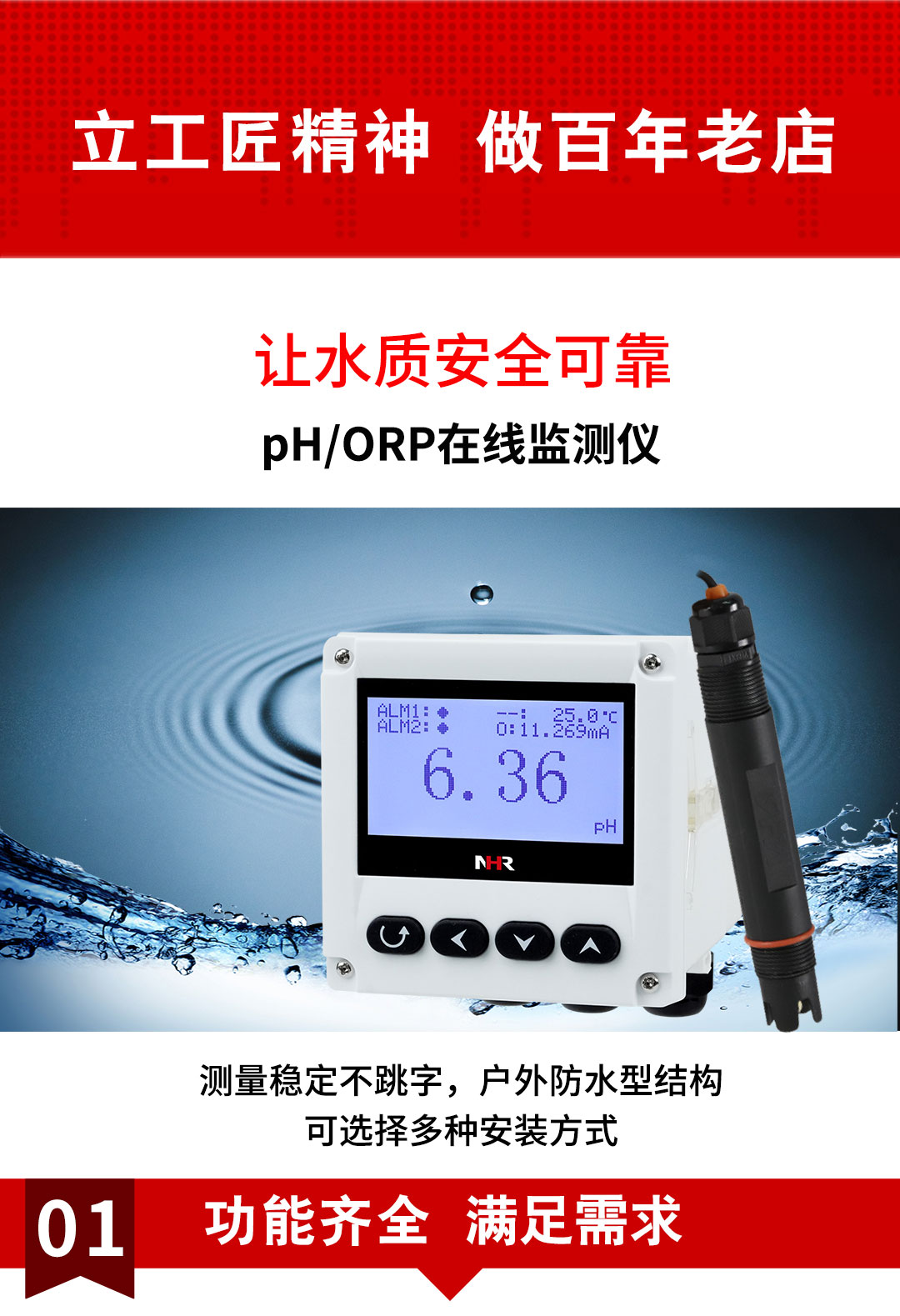 虹潤公司是專業(yè)生產(chǎn)水質(zhì)分析儀的國家專精特新“小巨人”企業(yè)。生產(chǎn)的PH/ORP在線監(jiān)測儀,具有多元化安裝方式,IP65防護等級,多種類型輸出,測量精準穩(wěn)定不跳字,變送輸出精準等特點。產(chǎn)品獲得一種適應(yīng)性強PH控制儀、智能化控制器等2項國家發(fā)明專利;主持起草現(xiàn)場設(shè)備集成等5項智能制造國家標準,以及現(xiàn)場設(shè)備工具(FDT)接口規(guī)范、工業(yè)過程控制系統(tǒng)用模擬輸入兩位或多位輸出儀表、過程分析技術(shù)系統(tǒng)等3項國家標準;參與國際5G標準制定,取得PH值測量儀表等2項相關(guān)軟件著作權(quán)。產(chǎn)品廣泛應(yīng)用于實驗室、水處理、環(huán)境監(jiān)測、食品、制藥、農(nóng)業(yè)等諸多領(lǐng)域。