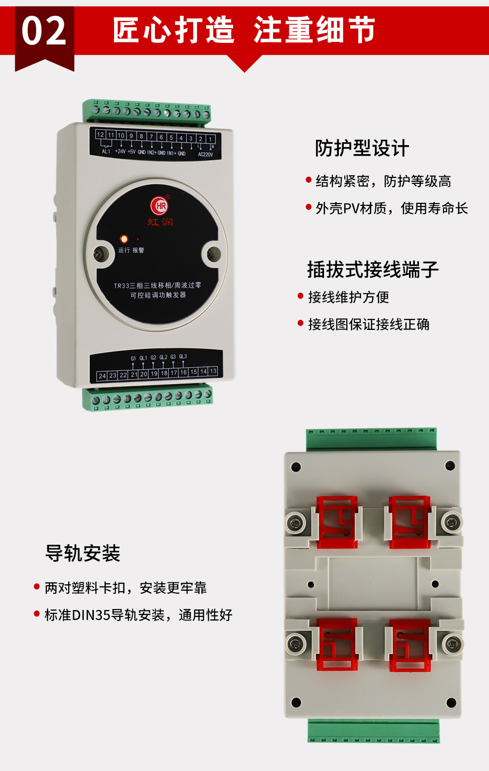 虹潤(rùn)公司是專業(yè)生產(chǎn)移相觸發(fā)器的國(guó)家專精特新“小巨人”企業(yè),生產(chǎn)的移相觸發(fā)器,具有采用光電隔離設(shè)計(jì),自動(dòng)同步功能,過(guò)流保護(hù)技術(shù),電源缺相檢測(cè),信號(hào)超限報(bào)警等特點(diǎn)。產(chǎn)品獲得巡回檢測(cè)顯示方法及裝置、儀表殼體等2項(xiàng)國(guó)家發(fā)明專利,主持起草工業(yè)過(guò)程控制系統(tǒng)用模擬輸入兩位或多位輸出儀表、物聯(lián)網(wǎng)智能溫度儀表通用技術(shù)條件等2項(xiàng)國(guó)家標(biāo)準(zhǔn)以及通信系統(tǒng)多通道數(shù)據(jù)采集控制終端規(guī)范軍用標(biāo)準(zhǔn),參與國(guó)際5G標(biāo)準(zhǔn)制定,取得外置移相觸發(fā)器等2項(xiàng)相關(guān)軟件著作權(quán)。產(chǎn)品廣泛應(yīng)用于工業(yè)溫控、電極控制、航天軍工、電爐溫控、食品醫(yī)藥等諸多領(lǐng)域。