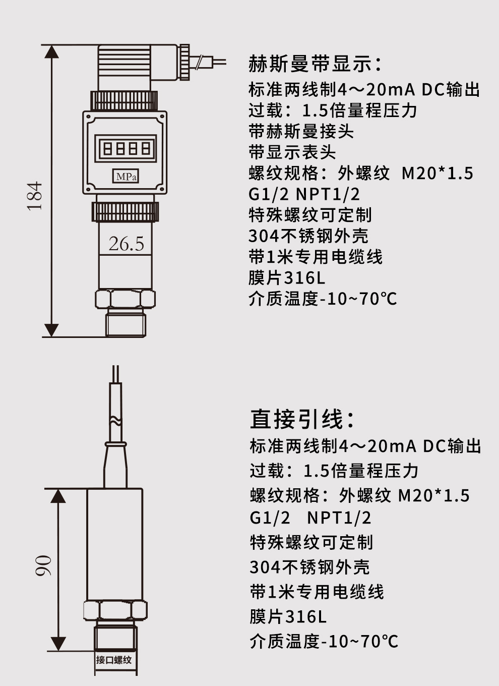 虹潤公司是專業(yè)生產(chǎn)壓力變送器的國家專精特新“小巨人”企業(yè),生產(chǎn)的小巧型壓力變送器,具有采用進(jìn)口芯體,量程范圍寬,抗沖擊抗震動(dòng),多種螺紋接口,性能穩(wěn)定等特點(diǎn)。產(chǎn)品獲得一種數(shù)字顯示低功耗壓力表、一種信號(hào)發(fā)生器裝置等2項(xiàng)國家發(fā)明專利,主持起草工業(yè)過程控制系統(tǒng)用模擬輸入兩位或多位輸出儀表、工業(yè)過程測量和控制系統(tǒng)用壓力/差壓變送器等2項(xiàng)國家標(biāo)準(zhǔn),通信系統(tǒng)多通道數(shù)據(jù)采集控制終端規(guī)范軍用標(biāo)準(zhǔn),以及現(xiàn)場設(shè)備集成等5項(xiàng)智能制造國家標(biāo)準(zhǔn),參與國際5G標(biāo)準(zhǔn)制定,取得數(shù)顯壓力表等2項(xiàng)相關(guān)軟件著作權(quán)。產(chǎn)品廣泛應(yīng)用于化工、食品、制藥、電力、設(shè)備配套、供暖、水處理、樓宇等行業(yè),需精準(zhǔn)測量流體壓力的現(xiàn)場。