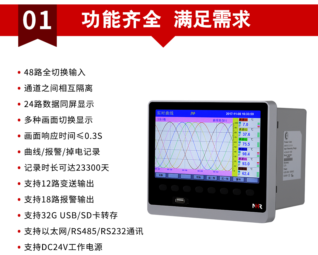 虹潤公司是專業(yè)生產(chǎn)無紙記錄儀的國家專精特新“小巨人”企業(yè)。生產(chǎn)的48路彩色無紙記錄儀,具有48路全切換輸入,數(shù)據(jù)記錄與轉(zhuǎn)存功能,配套上位機(jī)管理軟件,RS485/以太網(wǎng)通訊等特點(diǎn)。產(chǎn)品獲得無紙記錄儀、數(shù)據(jù)采集控制工作站、智能化控制器、巡回檢測顯示方法及裝置等4項(xiàng)國家發(fā)明專利;主持起草物聯(lián)網(wǎng)智能記錄儀表通用技術(shù)條件、物聯(lián)網(wǎng)智能溫度儀表通用技術(shù)條件等2項(xiàng)國家標(biāo)準(zhǔn),通信系統(tǒng)多通道數(shù)據(jù)采集控制終端規(guī)范軍用標(biāo)準(zhǔn),以及空間數(shù)據(jù)與信息數(shù)據(jù)傳輸系統(tǒng)等2項(xiàng)航天標(biāo)準(zhǔn),參與國際5G標(biāo)準(zhǔn)制定;取得彩色無紙記錄儀等4項(xiàng)相關(guān)軟件著作權(quán)。產(chǎn)品廣泛應(yīng)用于石化、冶金、電力、制藥、新能源、農(nóng)業(yè)等諸多領(lǐng)域。