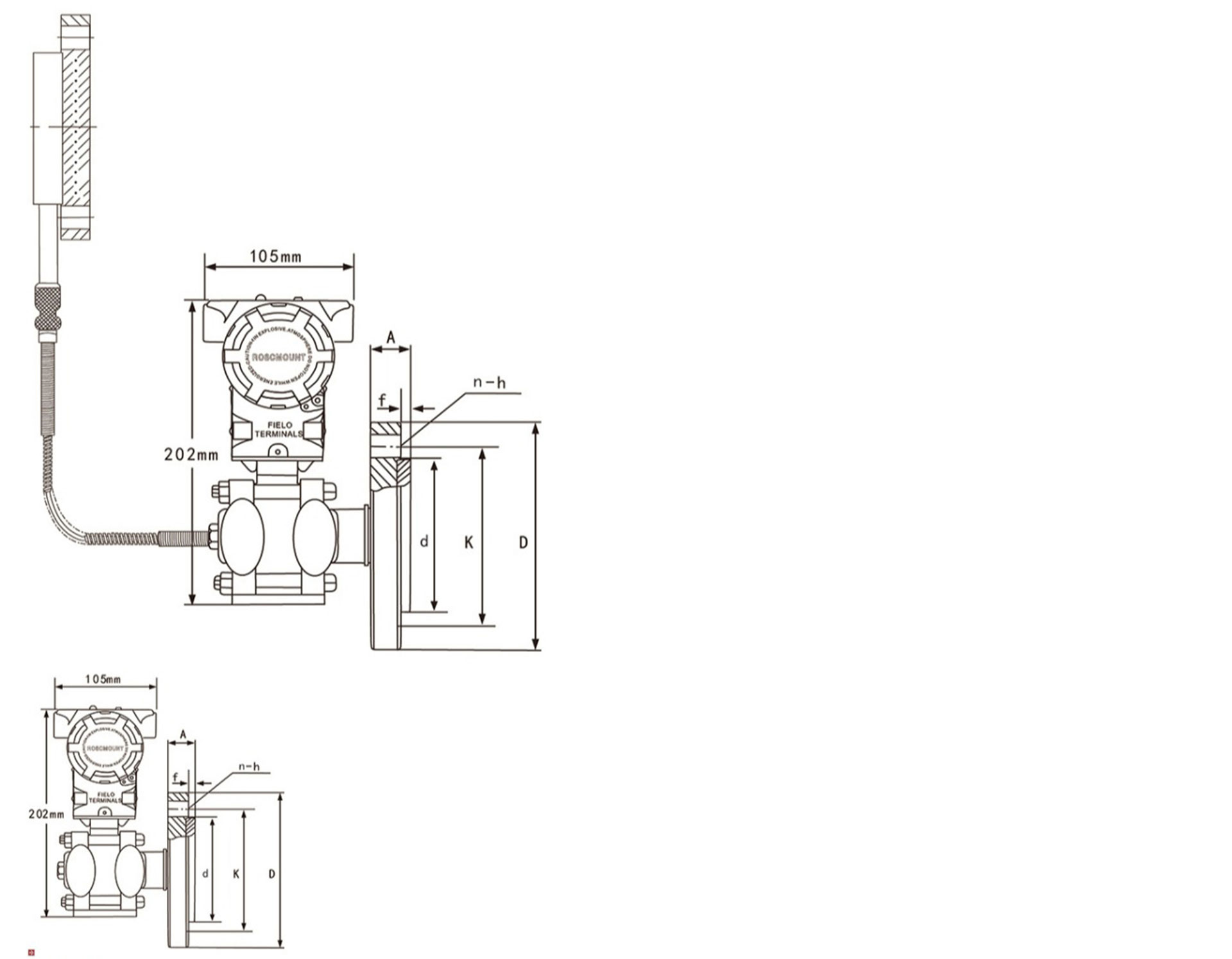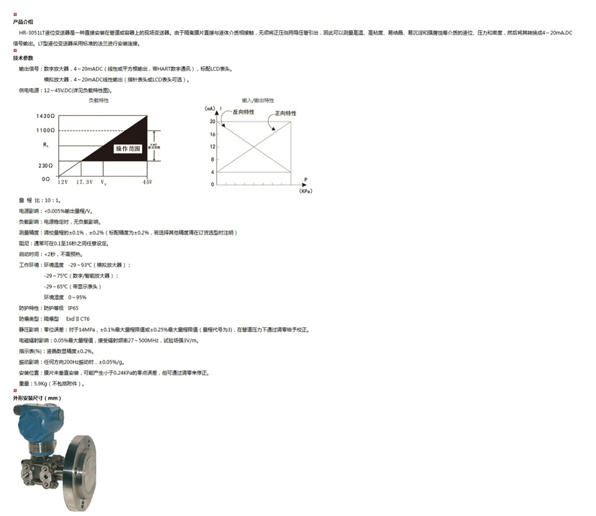 HR-3051LT液位變送器是一種直接安裝在管道或容器上的現(xiàn)場變送器。由于隔離膜片直接與液體介質(zhì)相接觸,無須將正壓側(cè)用導壓管引出,因此可以測量高溫、高粘度、易結(jié)晶、易沉淀和強腐蝕等介質(zhì)的液位、壓力和密度,然后將其轉(zhuǎn)換成4~20mA.DC信號輸出。